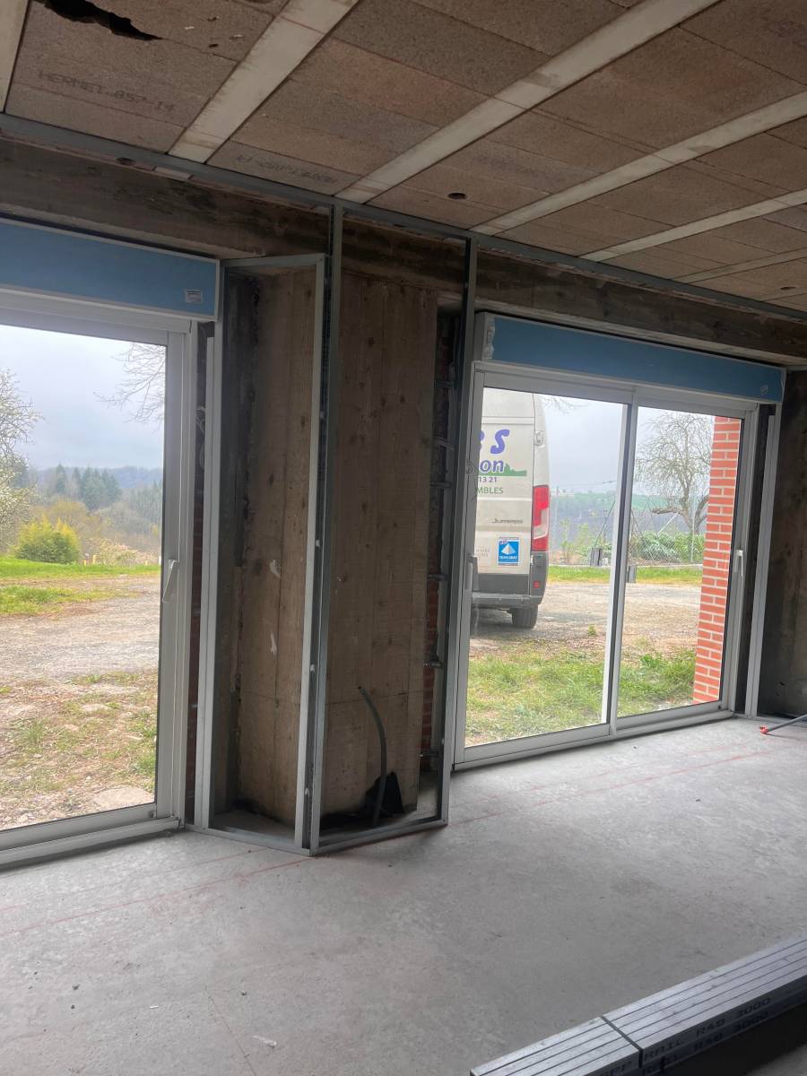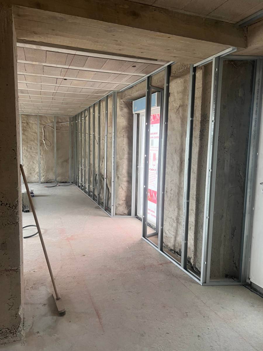 Pose d'ossature métallique sur tous les murs périphériques, pour, en suivant :